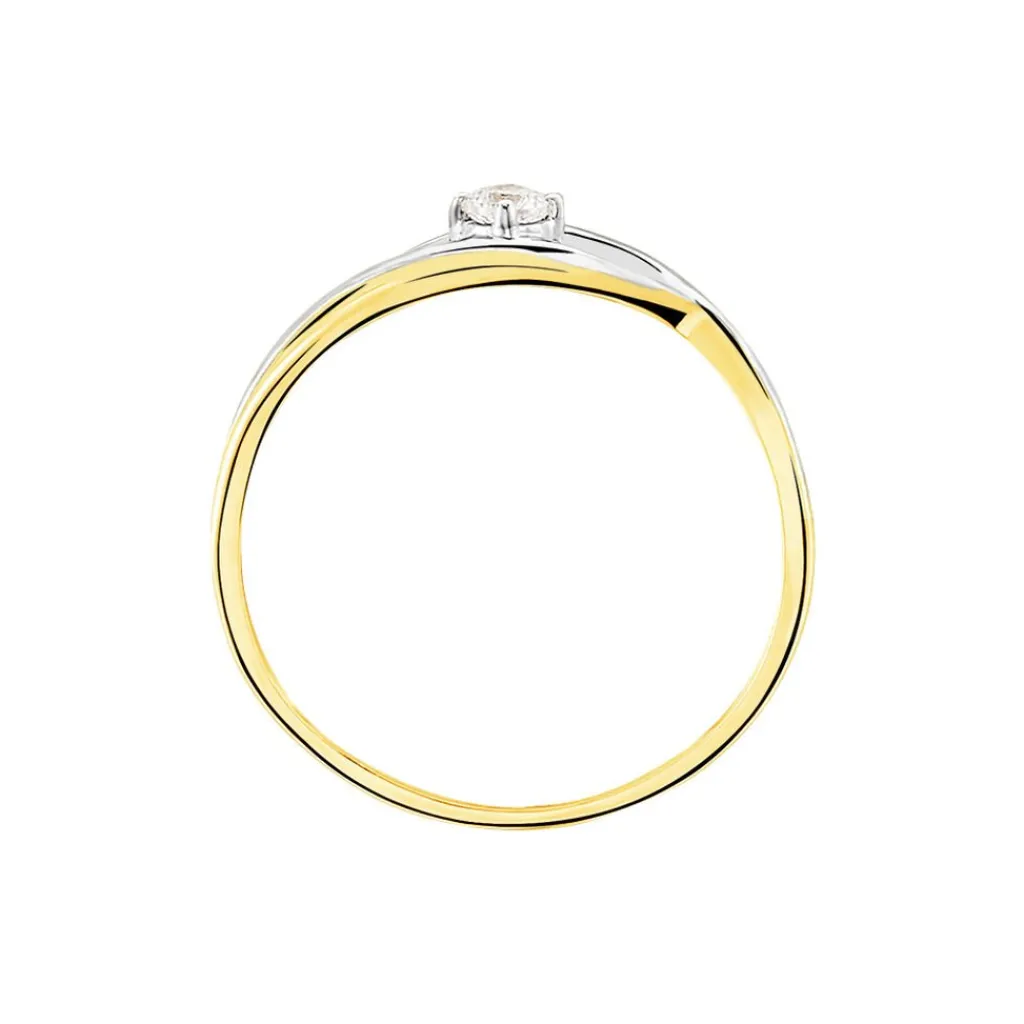Bague Or Bicolore 375/1000 Solitaire Entrelace Ajoure Oxyde De Zirconium