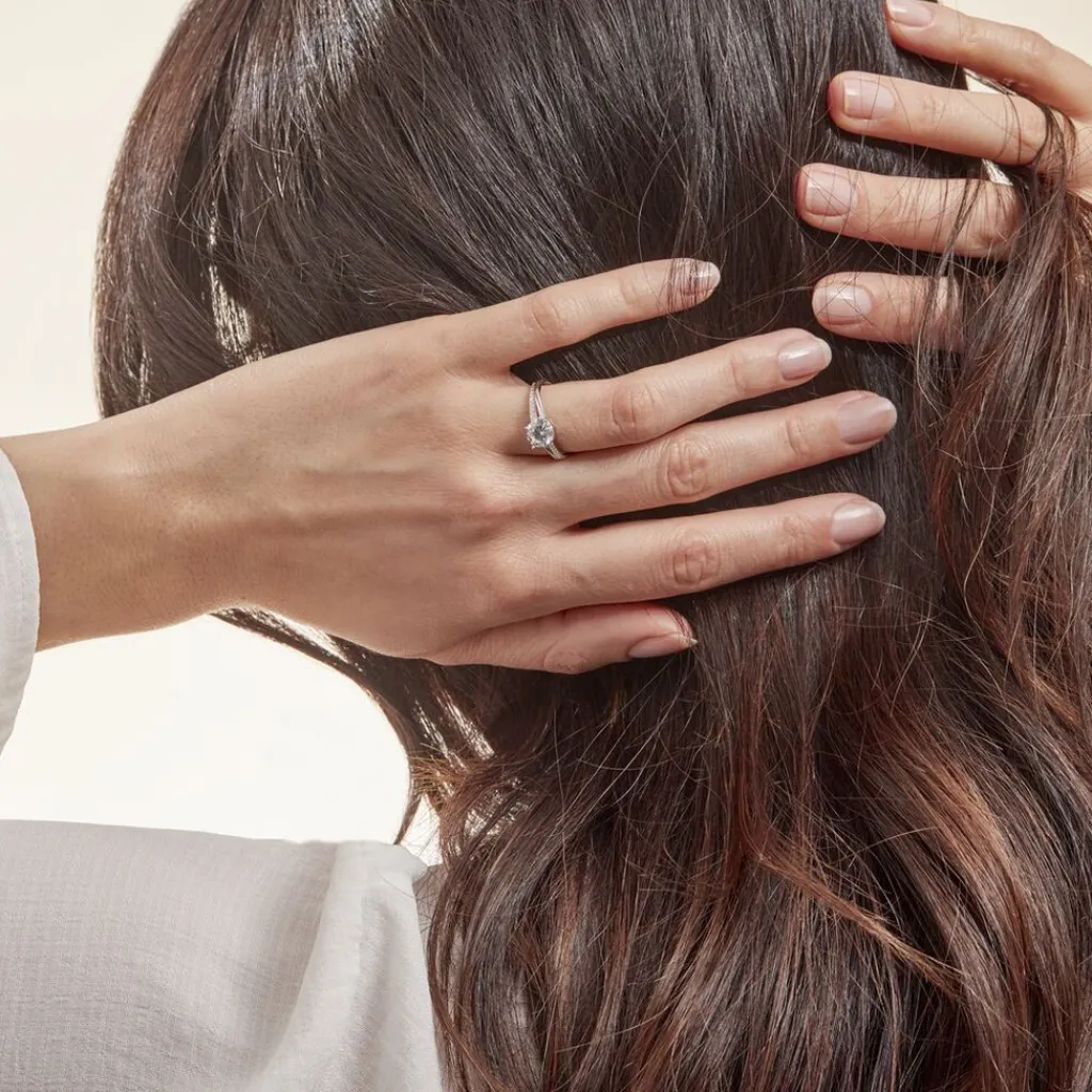 Bague Solitaire Argent Blanc 925/1000 Oxyde De Zirconium Central Accompagnee Oxydes De Zirconium