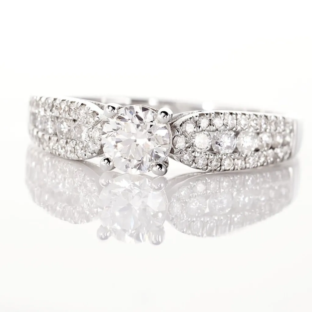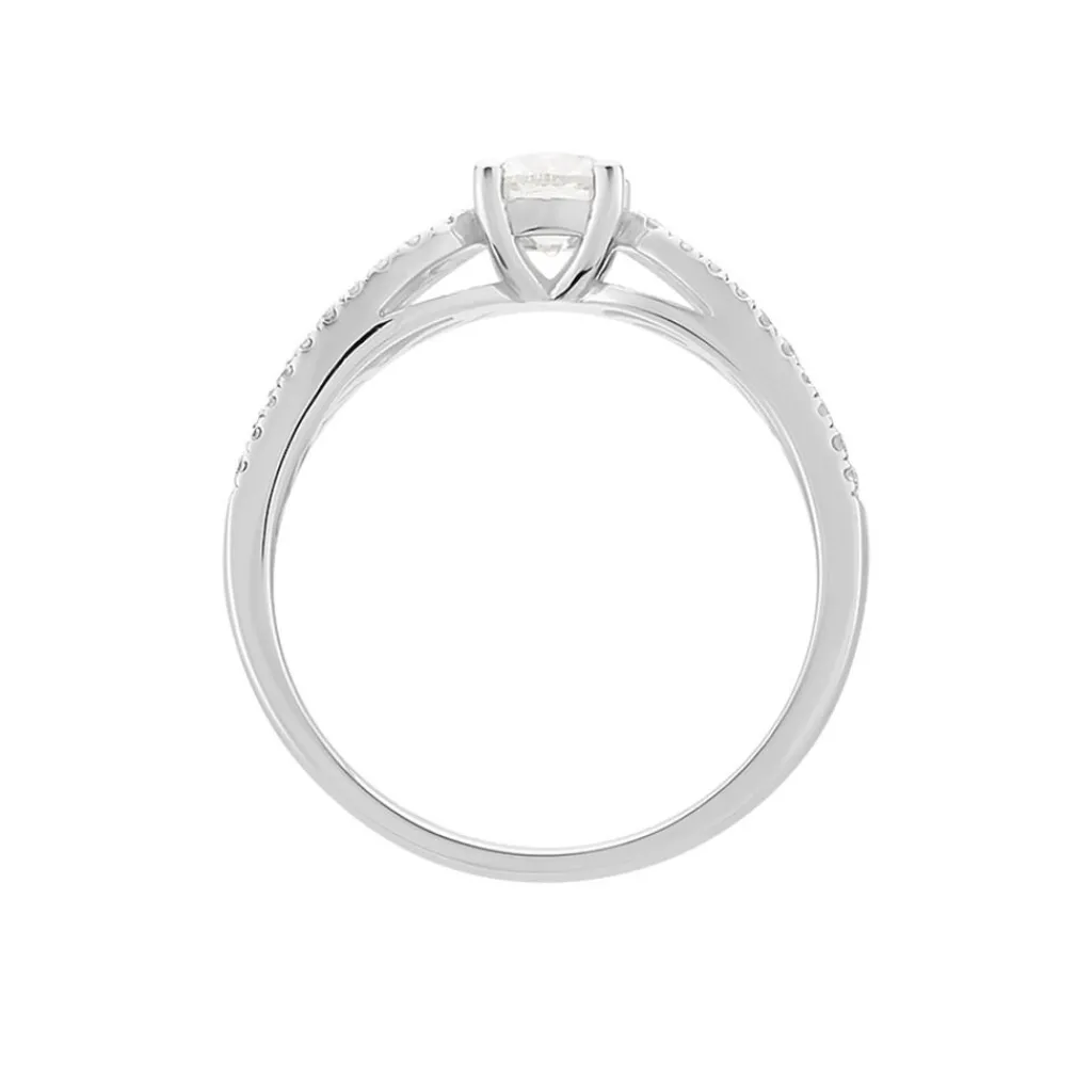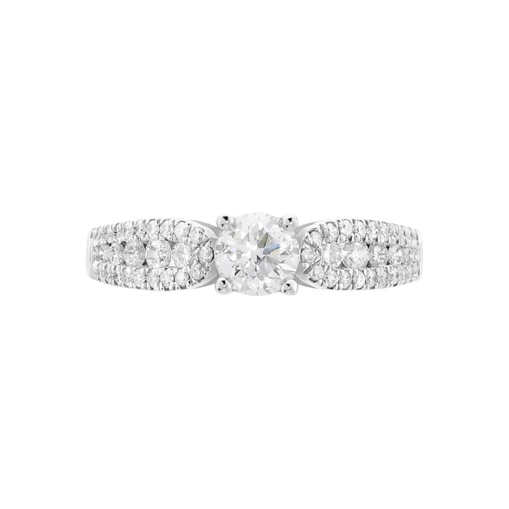 Solitaire Or Blanc 750/1000 Pierre De Centre 0.50ct Accompagne Diamants