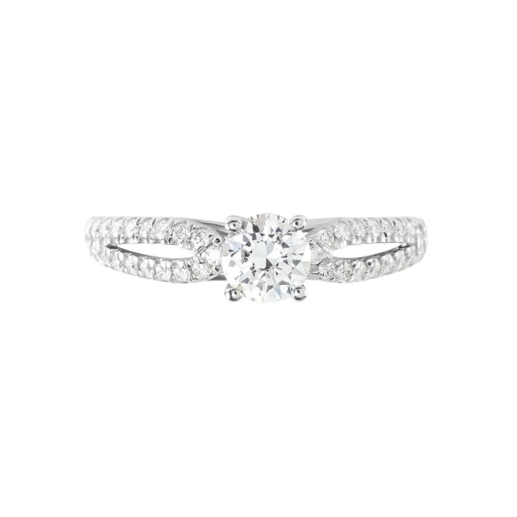 Bague Solitaire Platine 950/1000 Diamant Central 0.50ct Serti Griffes Accompagne Diamants