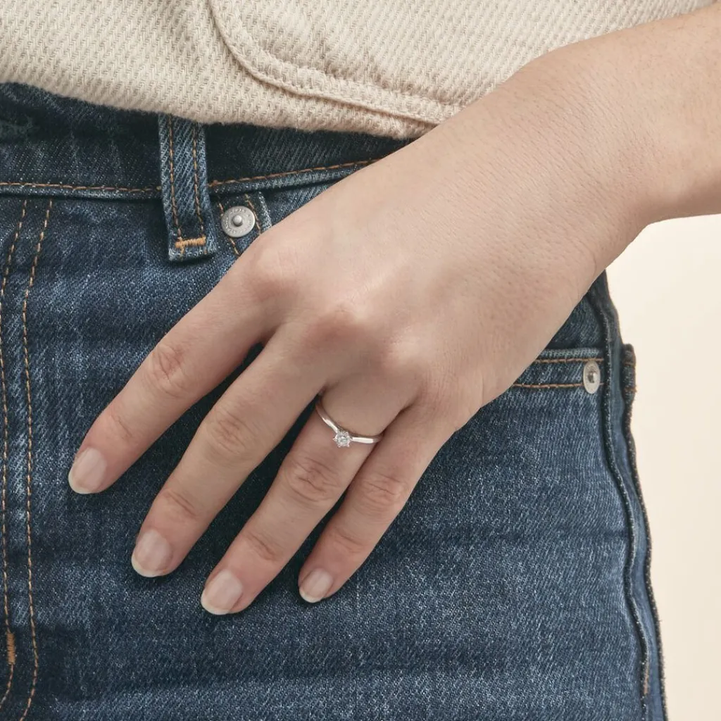 Solitaire Or Blanc 375/1000 Diamant 0.20cts Serti 6 Griffes Corps De Pince