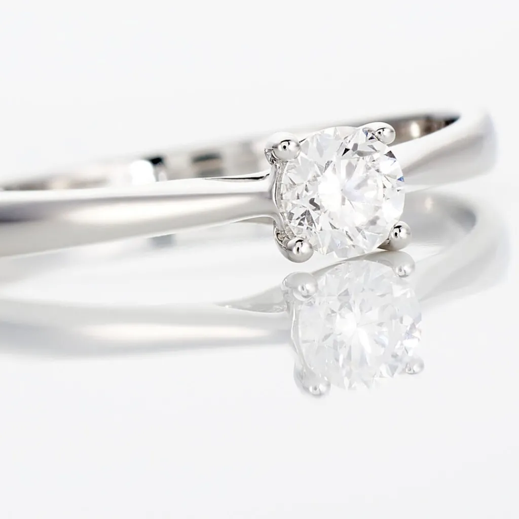 Solitaire Or Blanc 375/1000 Diamant 0.20cts Serti 4 Griffes