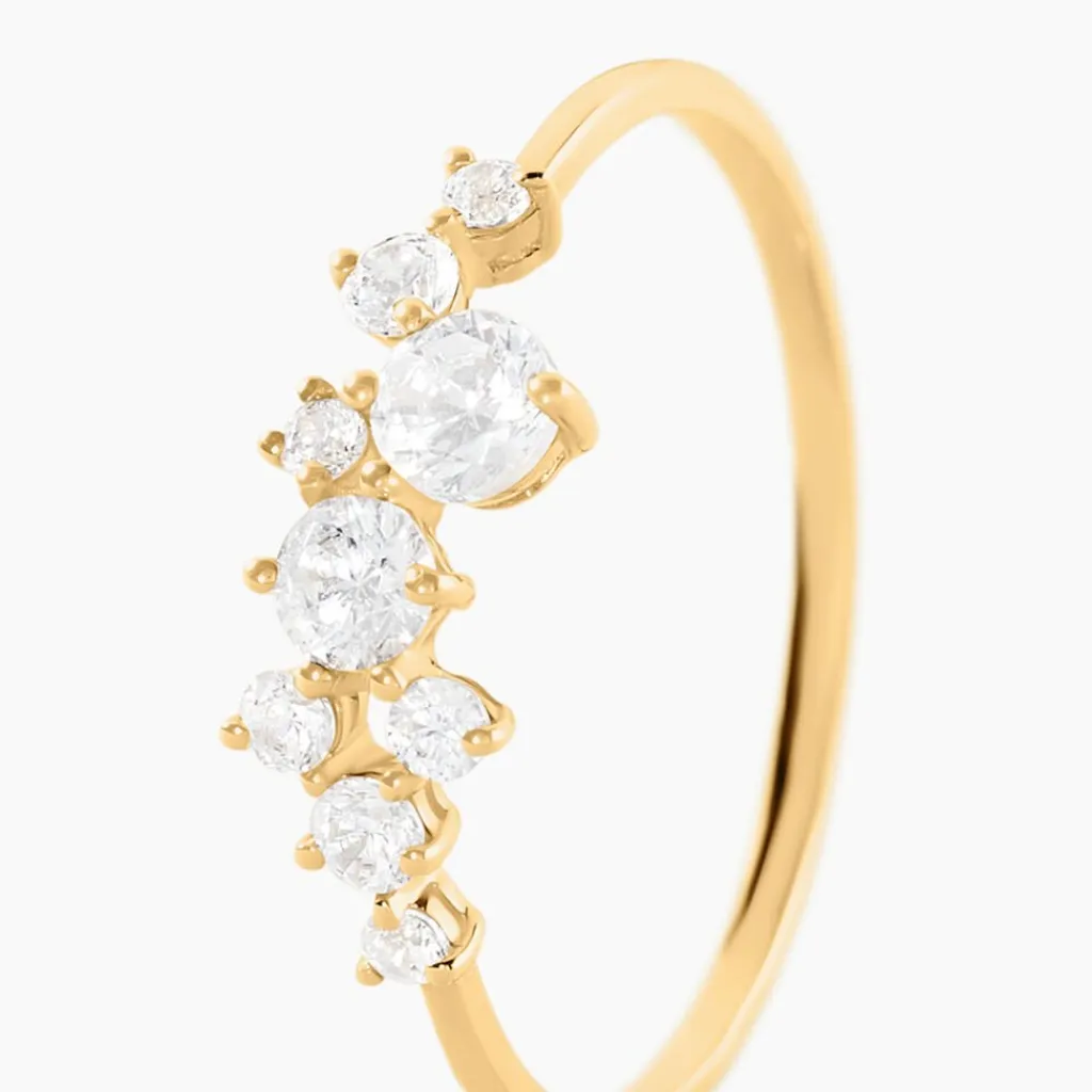 Bague Or Jaune 375/1000 Jardin De Pierres Oxyde De Zirconium Ronde Serti Griffes