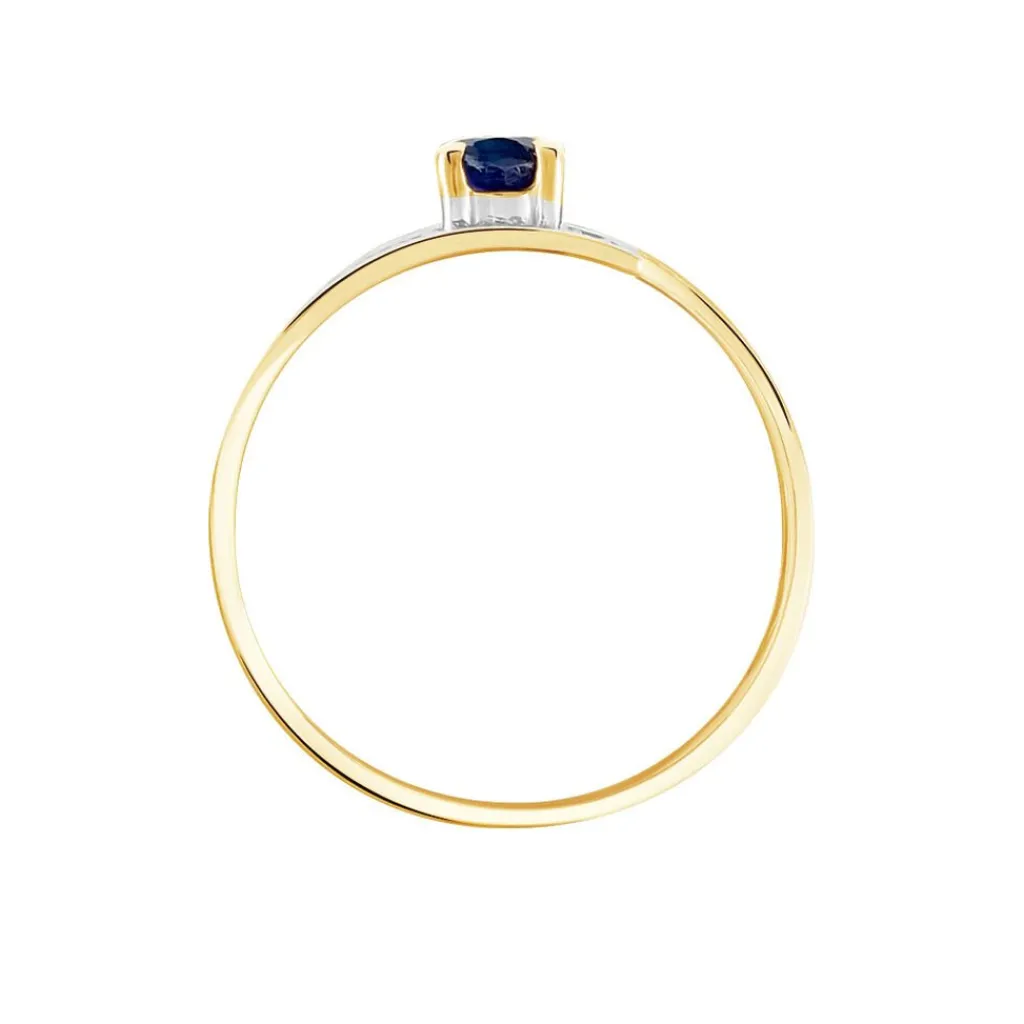 Bague Or Jaune 375/1000 Saphir Central 0.39ct Serti 4 Griffes Et Diamants