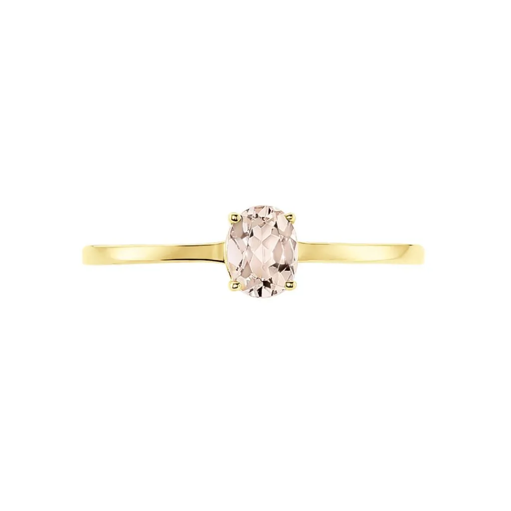 Bague Solitaire Or Jaune 375/1000 Ovale Quartz Rose 0.3cts Serti 4 Griffes