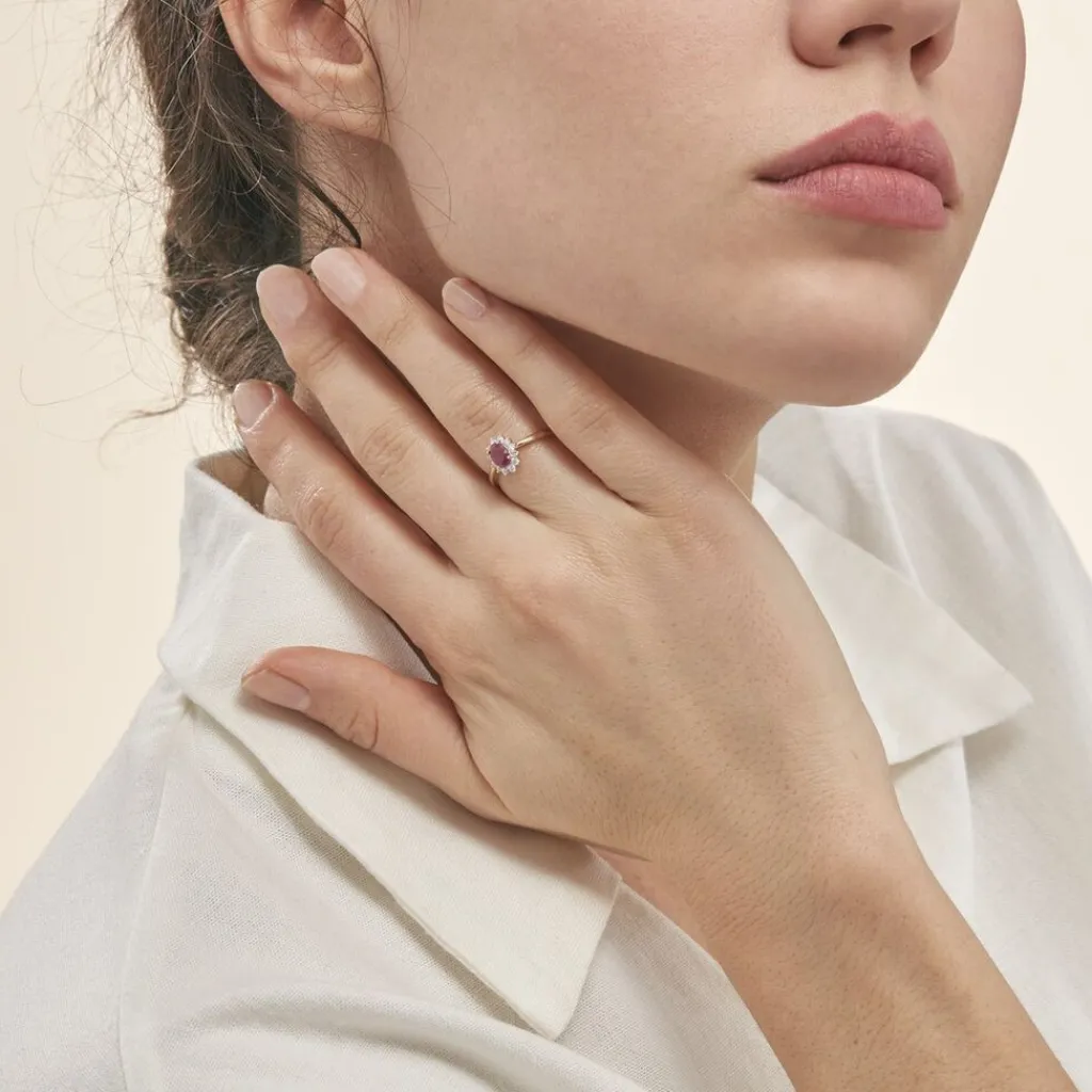 Bague Or Jaune 375/1000 Rubis Simple Entourage Diamants Pm