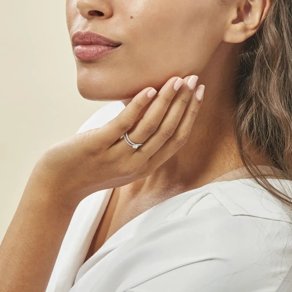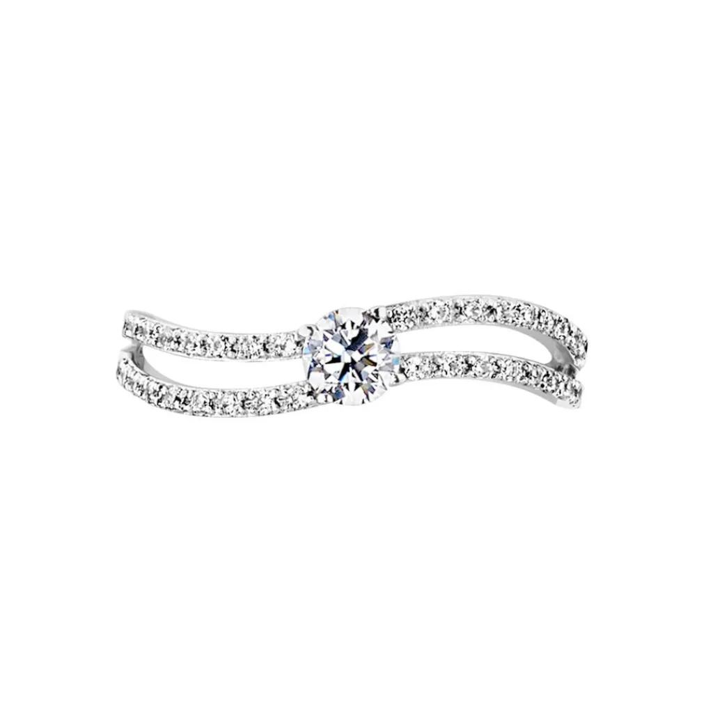 Bague Or Blanc 375/1000 Oxyde Central Et Corps De Bague Double Oxyde De Zirconium Vrille