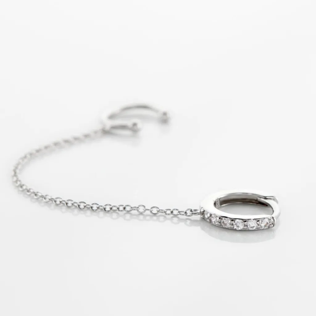 Bijou D’oreille Unitaire Argent Blanc 925/1000 Bague D’oreille Creole Pavage Oxydes De Zirconim Maille Forcat