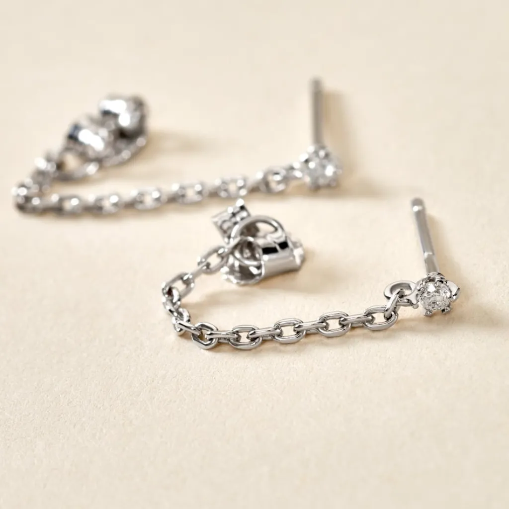 Bijoux D’oreilles Argent Blanc 925/1000 Oxyde De Zirconium Blanc Serti Griffes 2.5cm