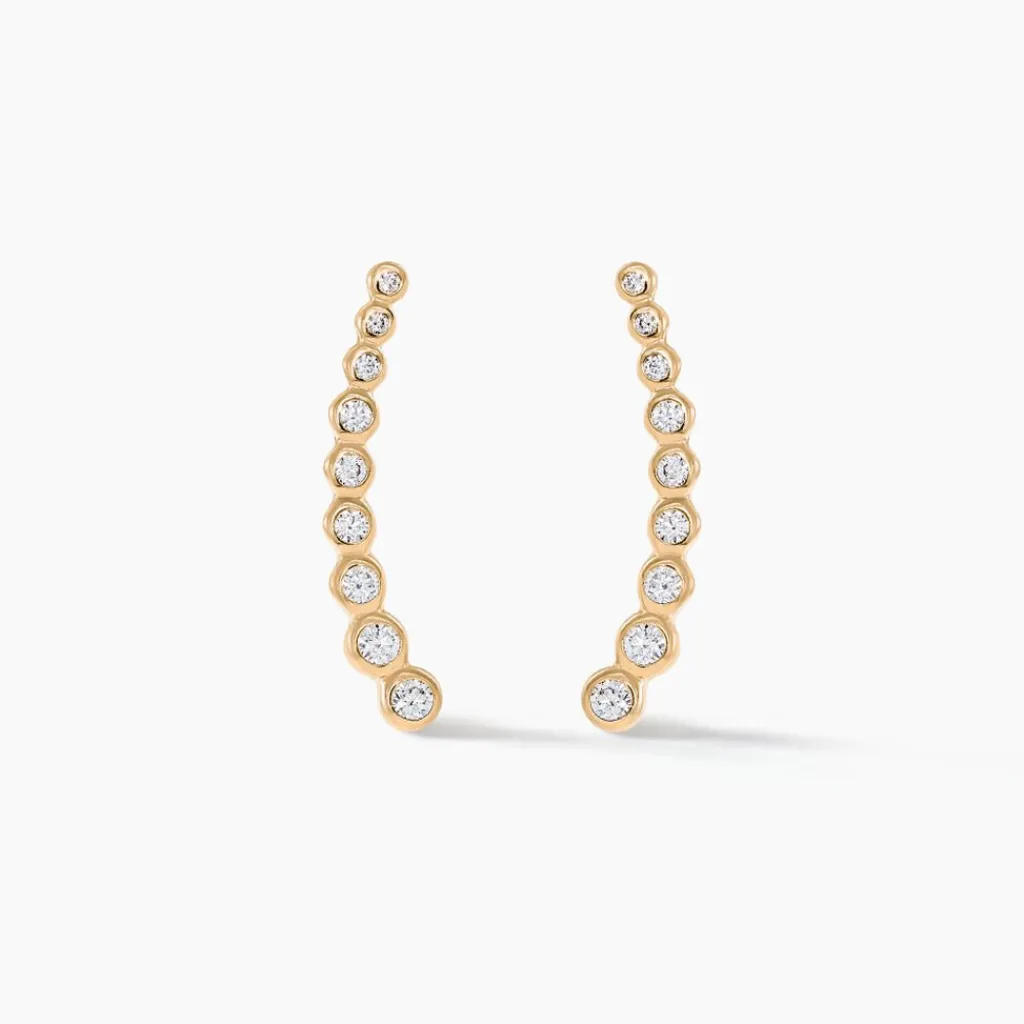 Boucles D’oreilles Grimpantes Plaque Or Jaune Forme Multi Ronds Oxydes De Zirconium