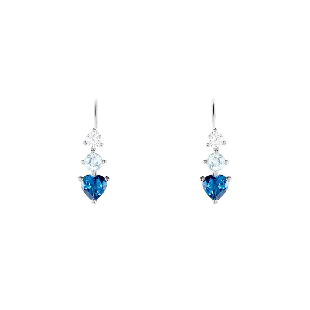 Boucles D’oreilles Grimpantes Or Blanc 375/1000 C艙ur Topaze London Blue Serti Griffes