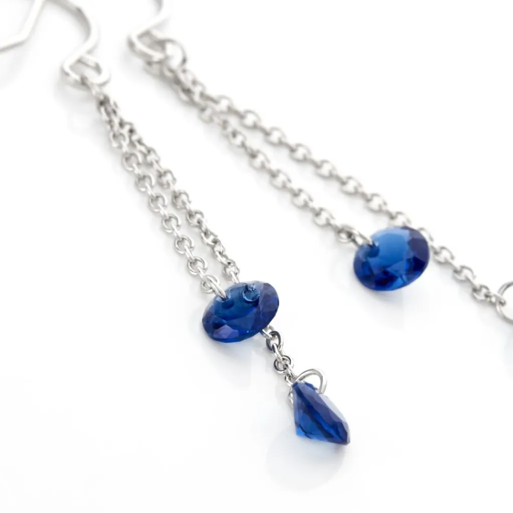 Boucles D’oreilles Pendantes Argent Blanc 925/1000 Oxydes Perce Bleus Double Maille Forcat