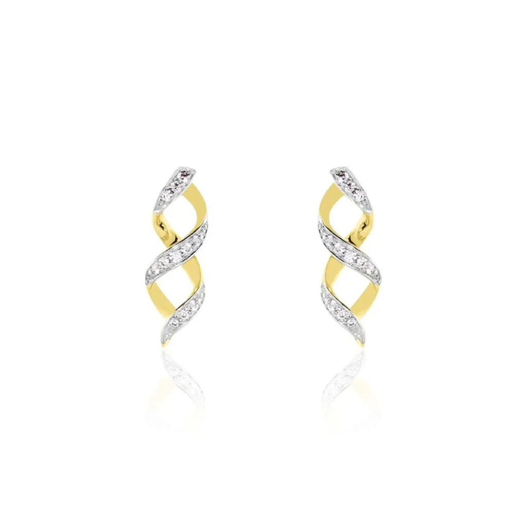 Boucles D’oreilles Or Jaune 375/1000 Vague Entrelacée Oxydes De Zirconium