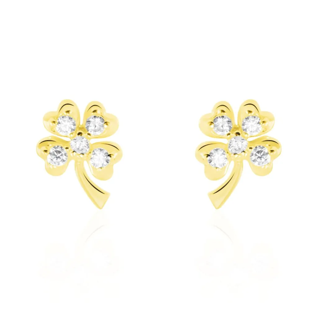 Boucles D’oreilles Or Jaune 375/1000 Trèfle Oxydes De Zirconium