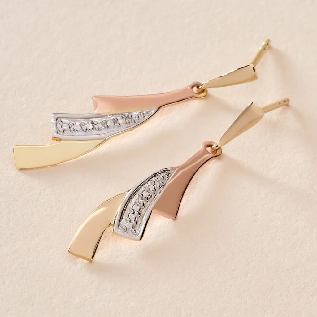 Boucles D’oreilles Or Tricolore 375/1000 Diamants