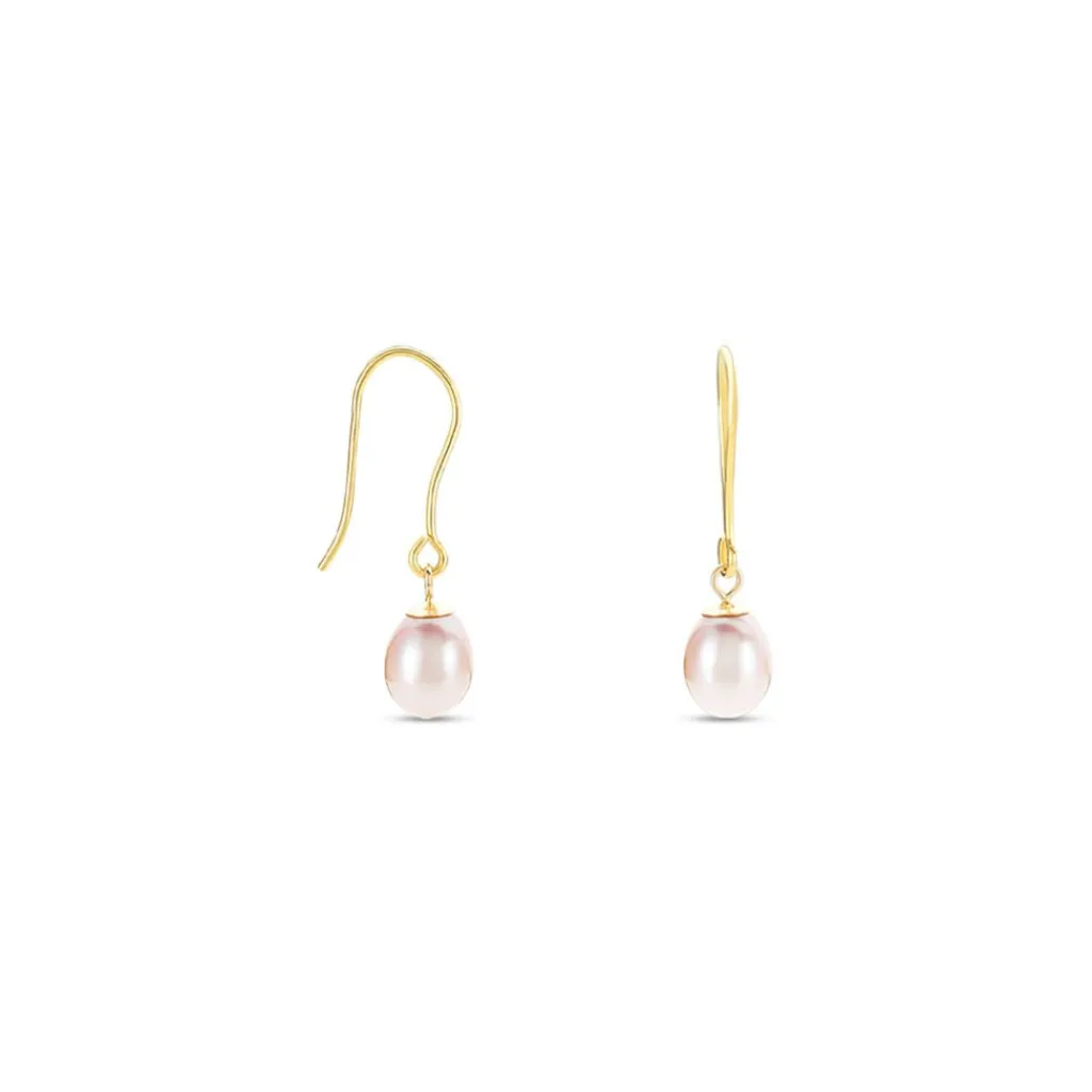 Boucles D’oreilles Pendantes Or Jaune 375/1000 Perles De Culture Roses Formes 5.5/6mm