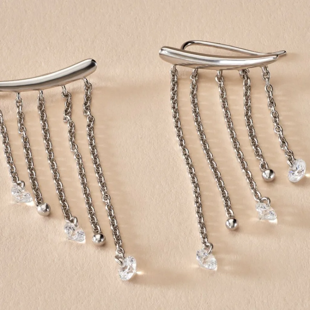 Boucles D’oreilles Pendantes Argent Rhodié 925/1000 Oxyde De Zirconium