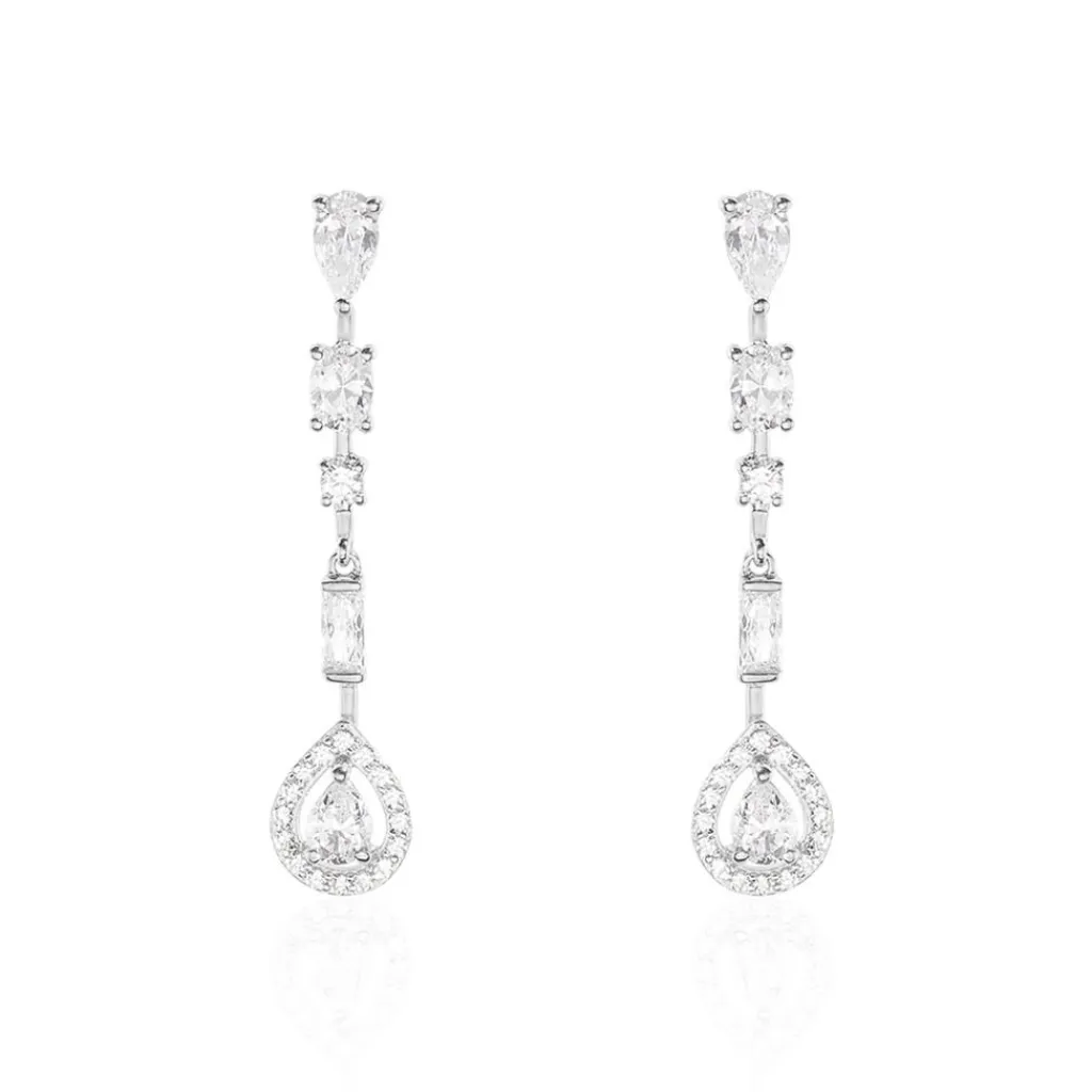 Boucles D’oreilles Or Blanc 375/1000 Pendantes Style Rivière Oxydes De Zirconium