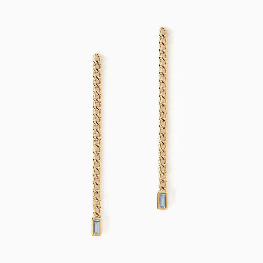 Boucles D’oreilles Pendantes Or Jaune 375/1000 Topaze Baguette Maille Gourmette