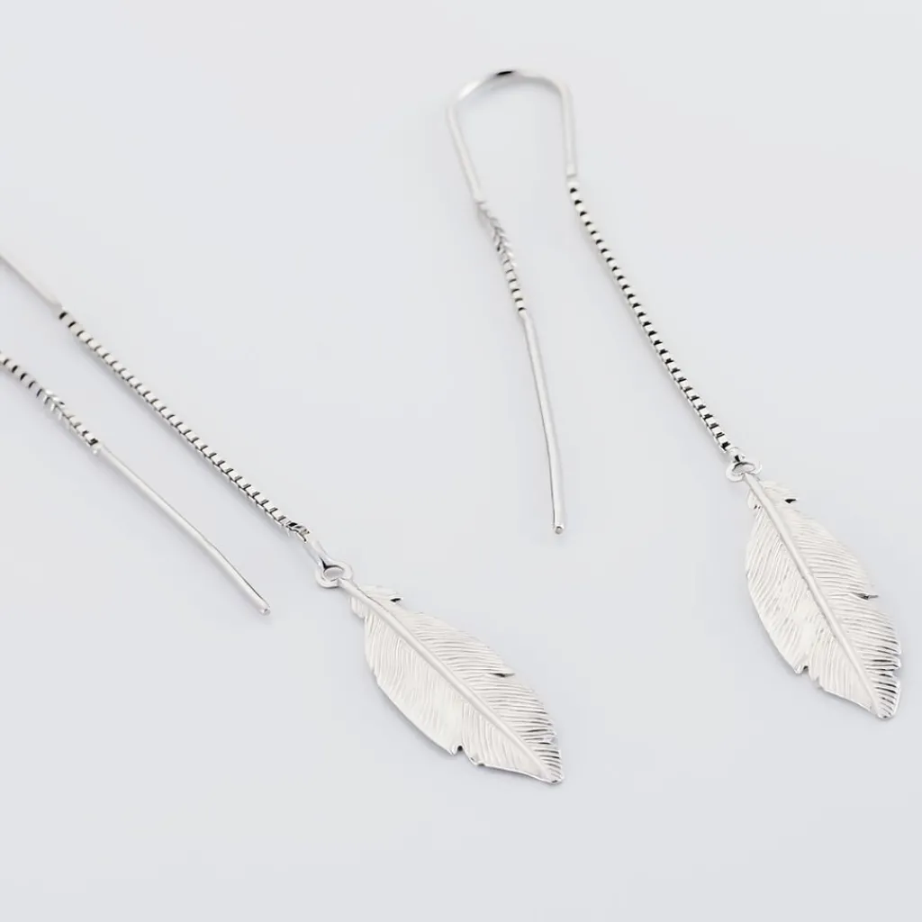 Boucles D’oreilles Pendantes Argent Blanc 925/1000 Plumes Mailles Forcat