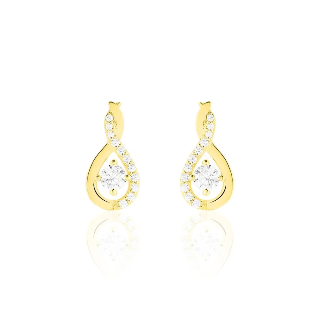 Boucles D’oreilles Or Jaune 375/1000 Gouttes Entrelacées Oxydes De Zirconium