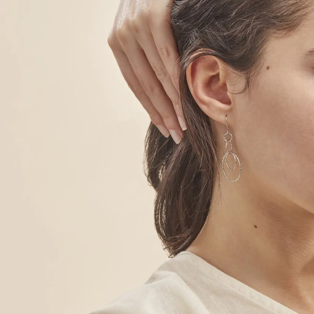 Boucles D’oreilles Pendantes Argent Blanc 925/1000 Cercles Ajoures Multiples