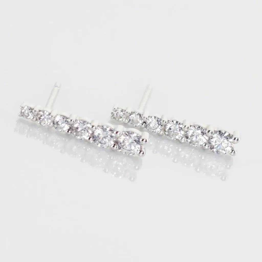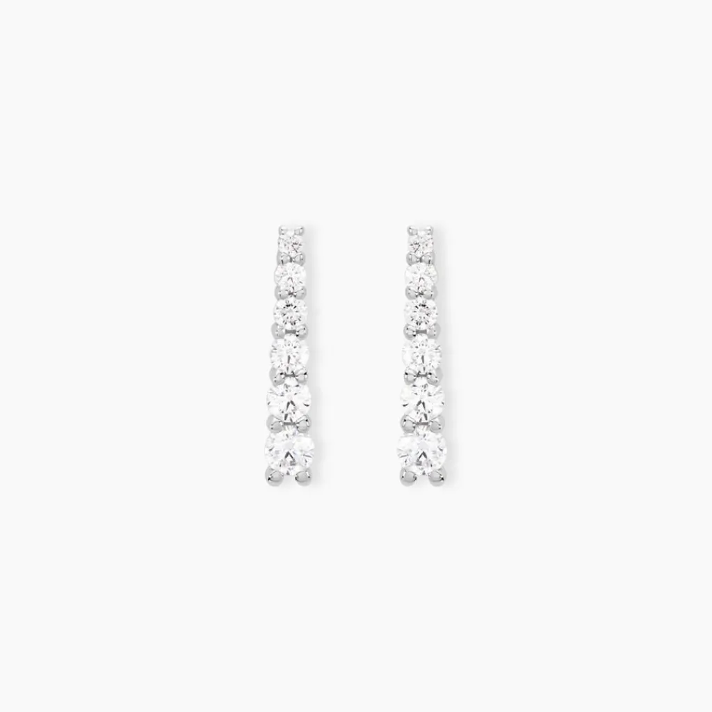 Boucles D’oreilles Pendantes Or Blanc 375/1000 Forme Barrette Pavage Oxydes De Zirconium