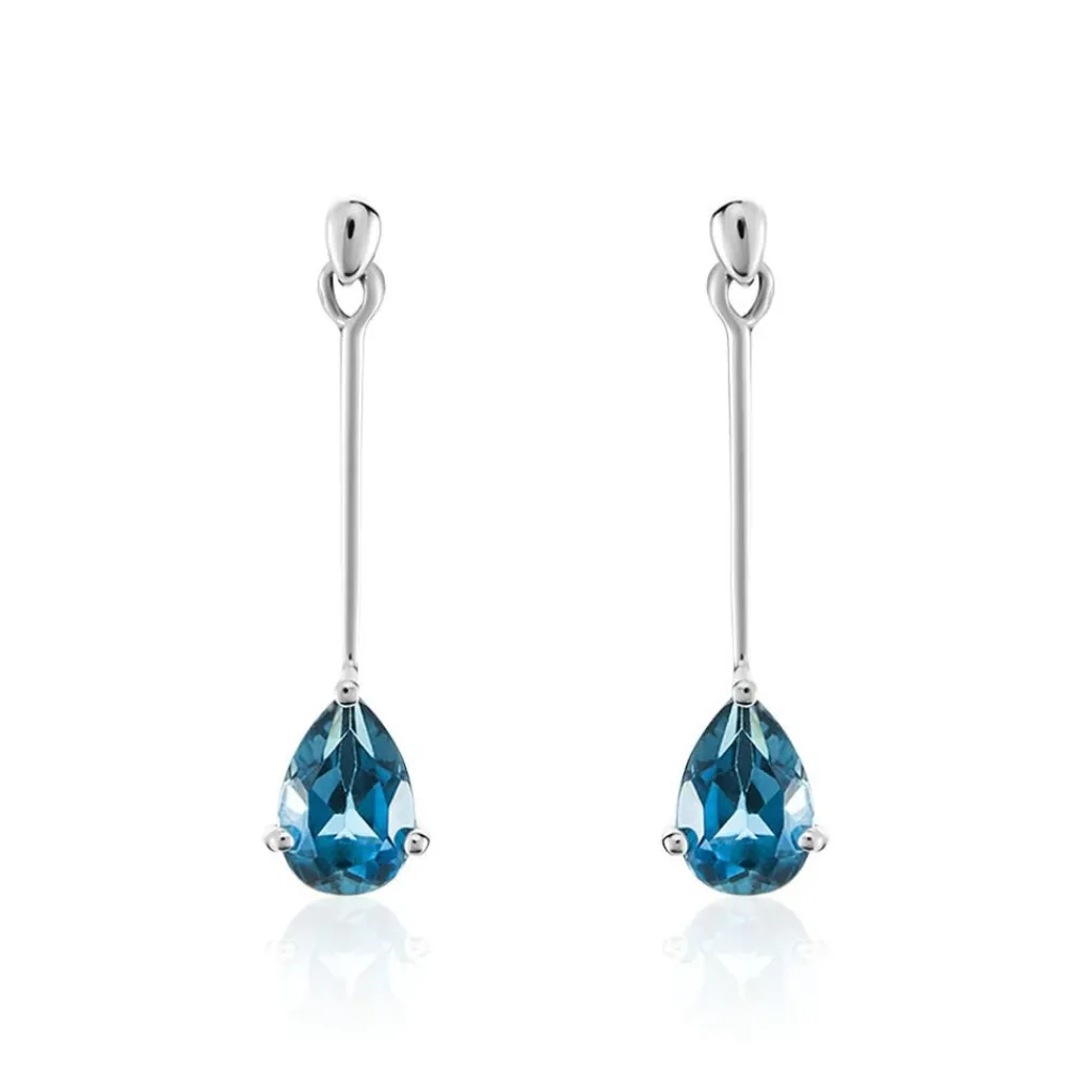 Boucles D’oreilles Pendantes Or Blanc 375/1000 Topaze London Blue Serti Griffes 1ct