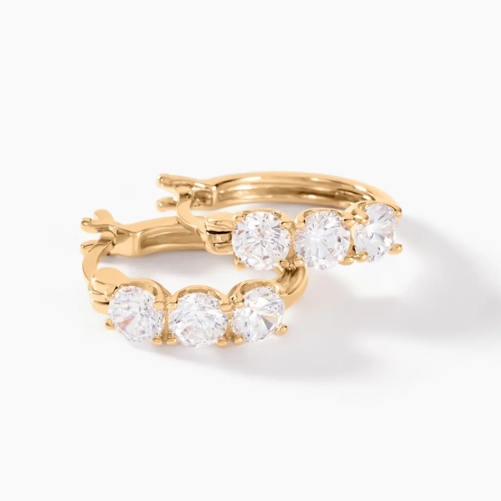 Boucles D’oreilles Plaqué Or Jaune Trio Oxydes De Zirconium