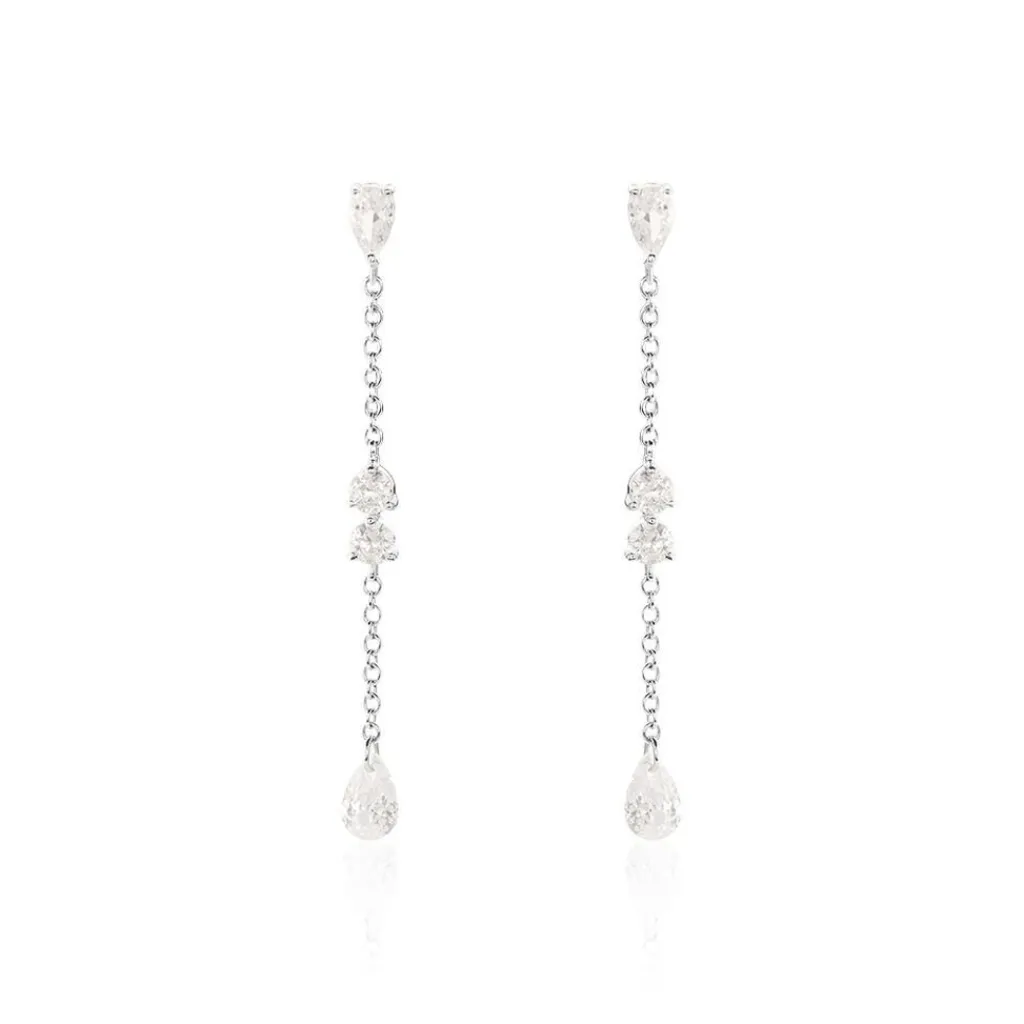 Boucles D’oreilles Pendantes Argent 925/1000 Oxydes De Zirconium Sertis Griffes