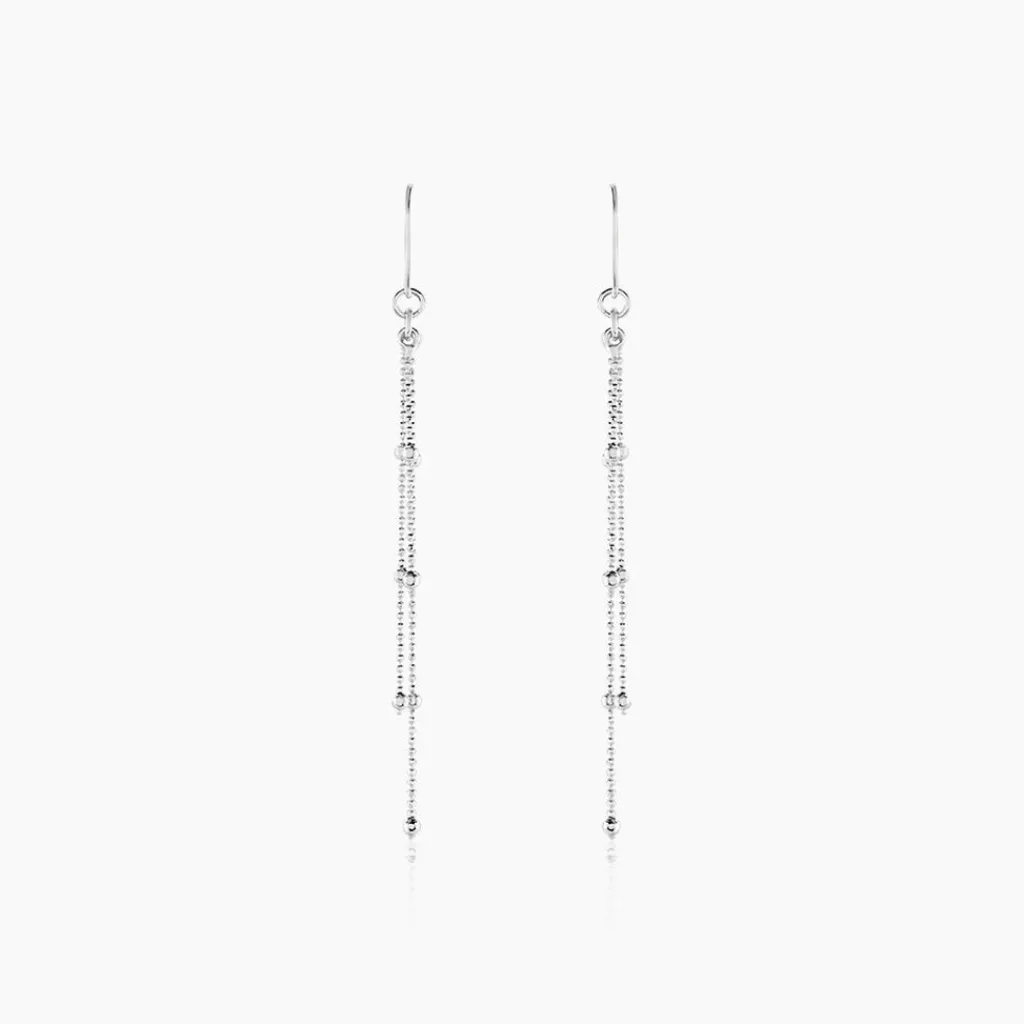 Boucles D’oreilles Pendantes Argent Blanc 925/1000 Triple Chaines Boules