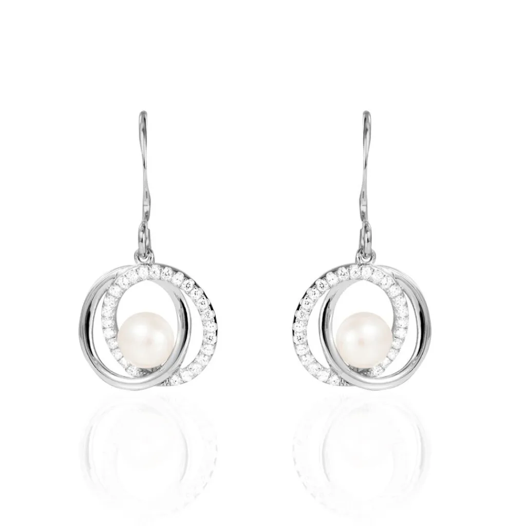 Boucles D’oreilles Argent Blanc 925/1000 Perles De Culture Nacres 5/5.5mm Oxydes De Zirconium