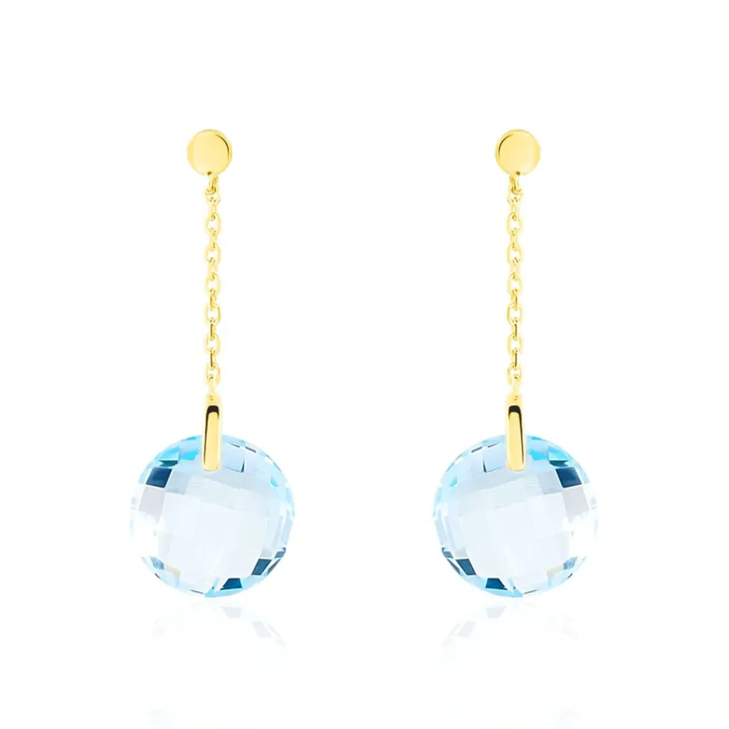 Boucles D’oreilles Or Jaune 375/1000 Pendantes Topazes