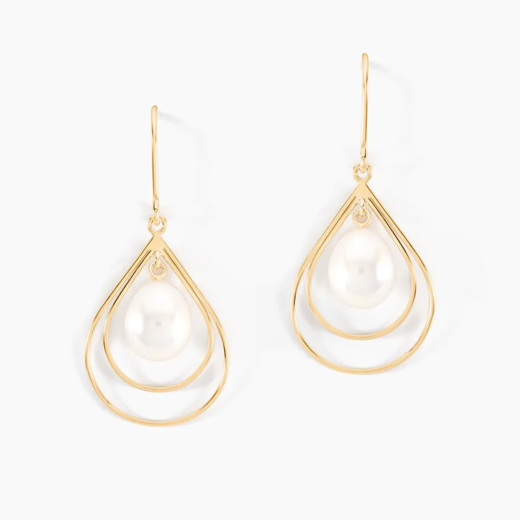 Boucles D’oreilles Or Jaune 375/1000 Double Goutte Perles De Culture 7/7.5mm Poire Blanche