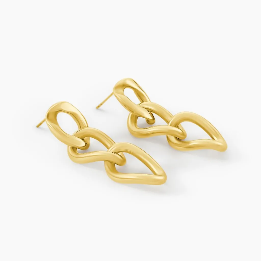 Boucles D’Oreilles Pendantes Acier Inoxydable Jaune Maillons Entrelaces 4.5Cm
