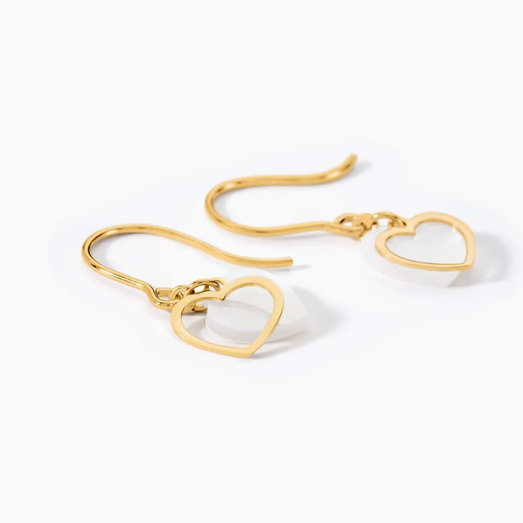 Boucles D’oreilles Pendantes Or Jaune 375/1000 C艙ur Ajouré Et Nacre