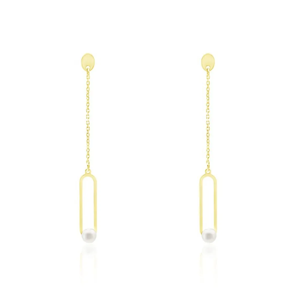 Boucles D’oreilles Pendantes Or Jaune 375/1000 Perle De Culture 3-3.5mm