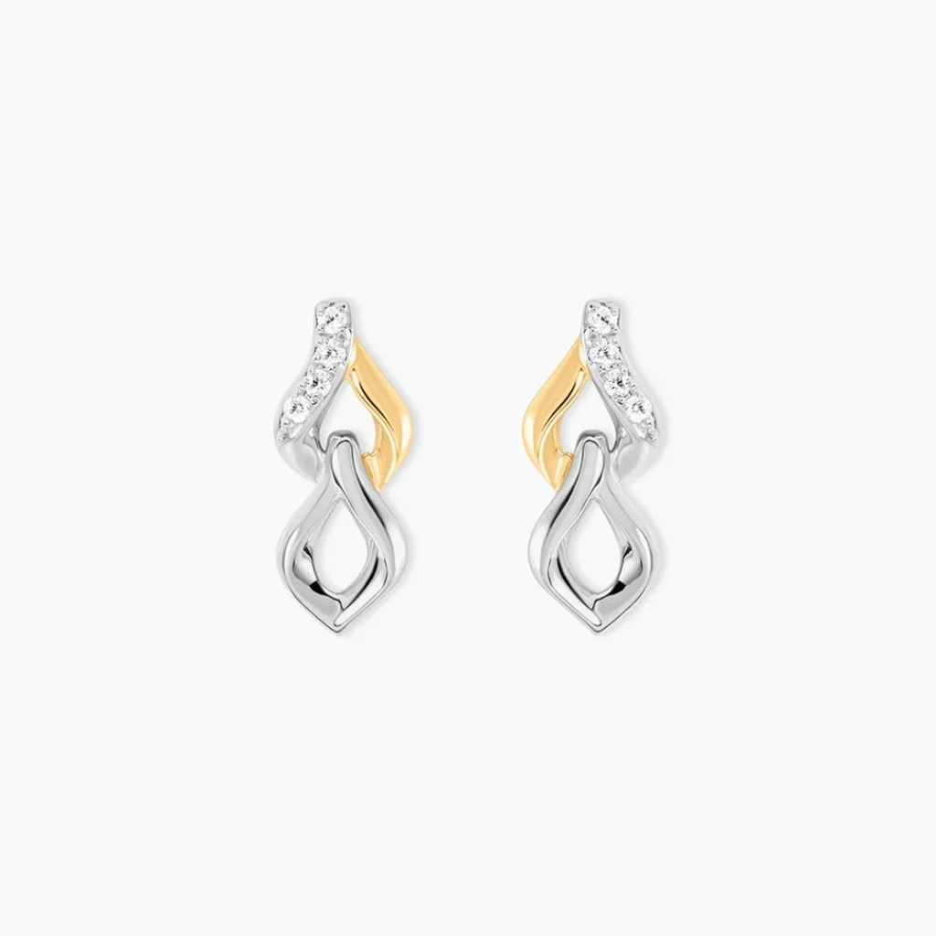 Boucles D’Oreilles Pendantes Or Jaune 375/1000 Et Argent Blanc 925/1000 Duo De Gouttes Oxydes De Zirconium Blancs