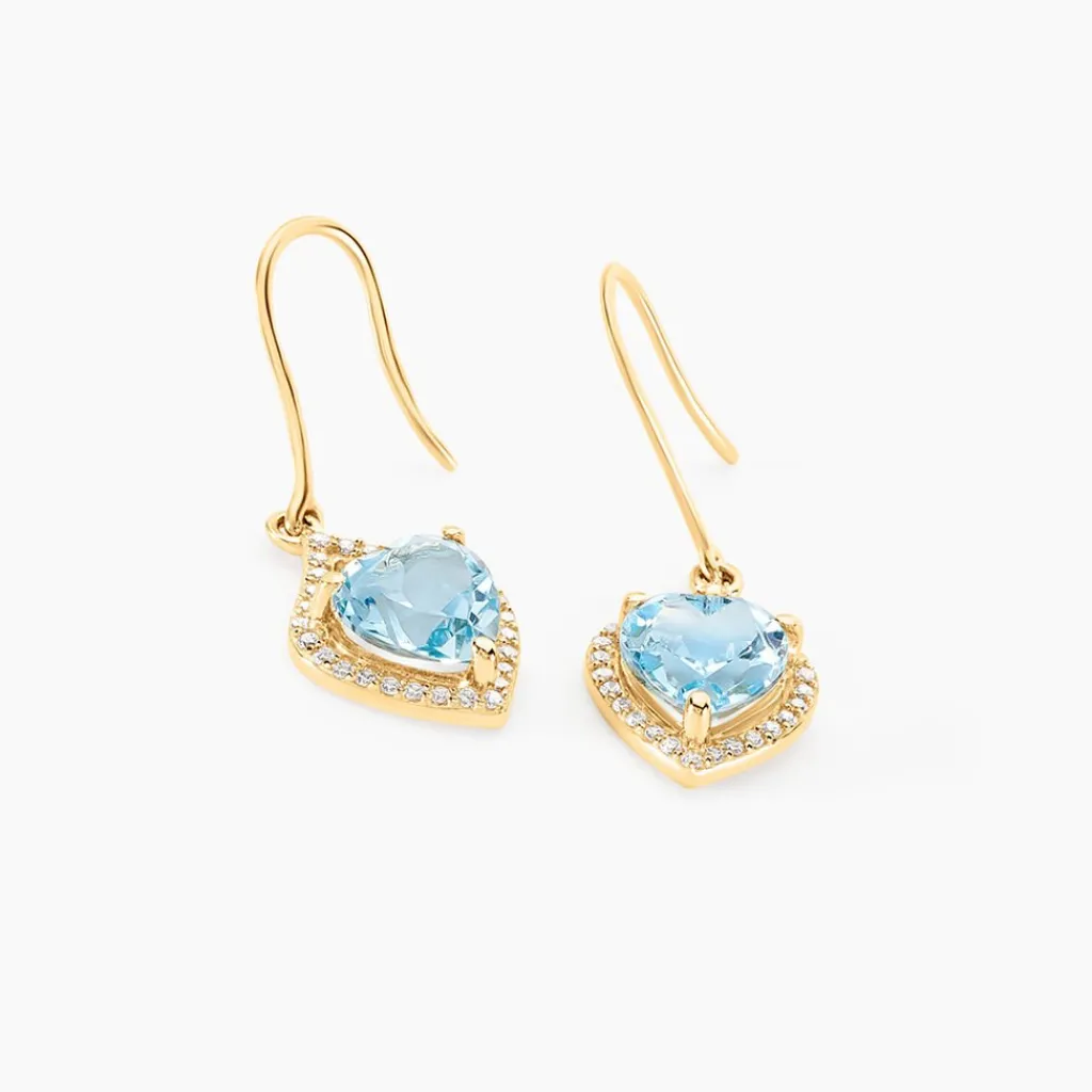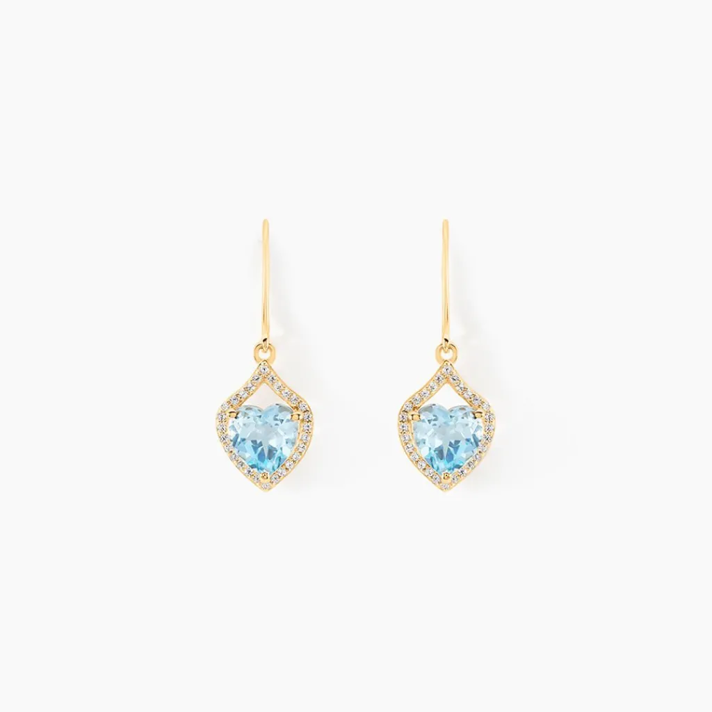 Boucles D’oreilles Or Jaune 375/1000 Ecrin C艙ur Topaze Et Oxydes De Zirconium