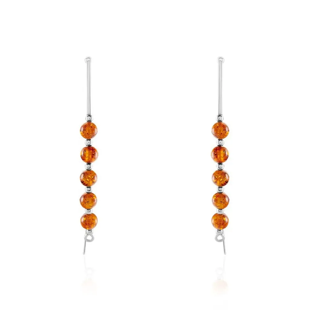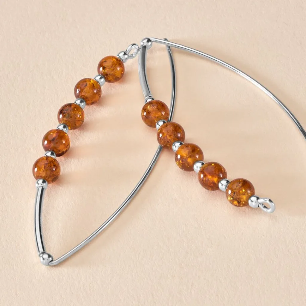 Boucles D’oreilles Pendantes Argent 925/1000 Ambre Forme Amande Cognac