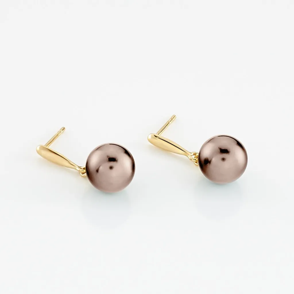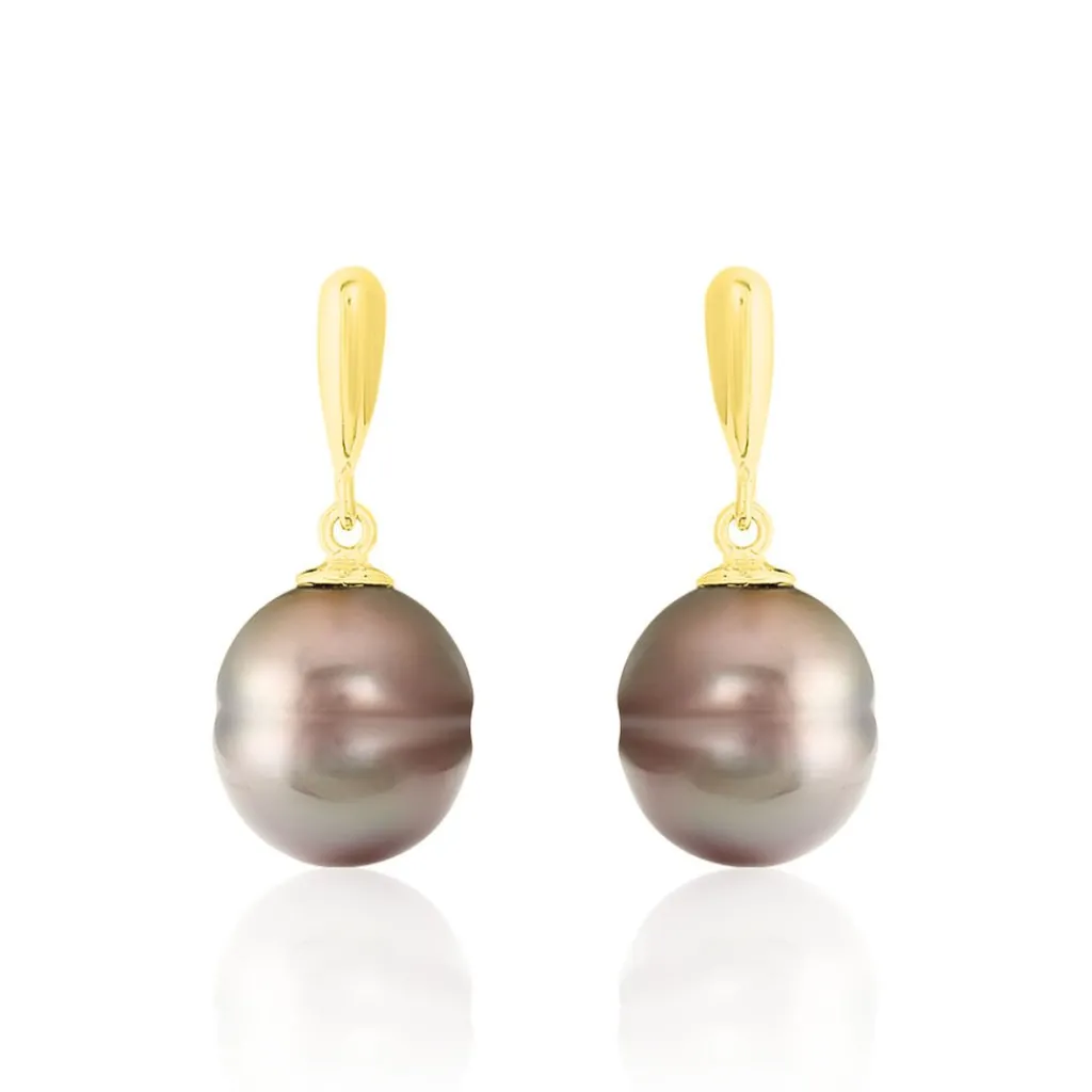Boucles D’oreilles Or Jaune 375/1000 Perle De Culture Mer Du Sud Tahiti 8/9mm Semi-baroque