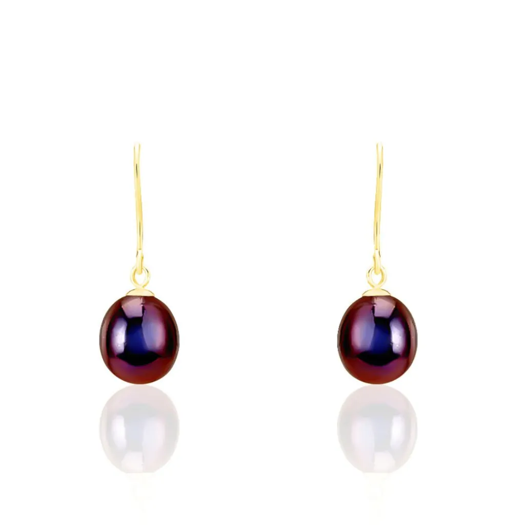 Boucles D’oreilles Pendantes Or Jaune 375/1000 Perles De Culture Nacre Noire 5.5/6mm