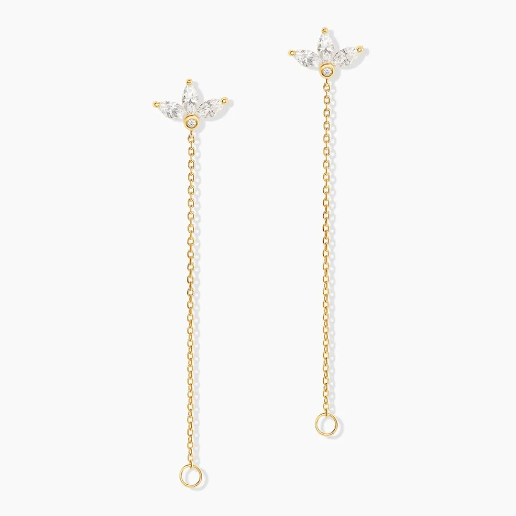Boucles D’oreilles Chaine Pendantes Or Jaune 375/1000 Navettes Chaine Oxydes De Zirconium 0.75 Cts Serti Griffes