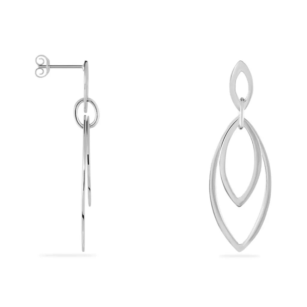 Boucles D’oreilles Pendantes Argent Blanc 925/1000 Ovales Ajoures