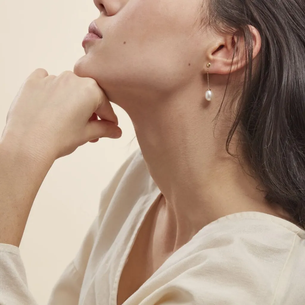 Boucles D’oreilles Or Jaune 375/1000 Poussette Avec Boule Et Perle De Culture 7.5/8mm Poire