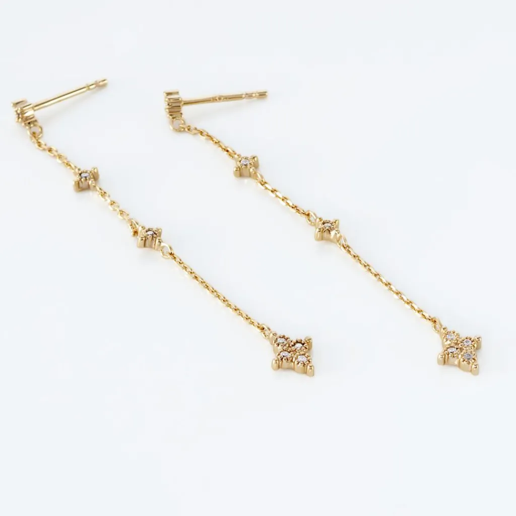 Boucles D’oreilles Pendantes Plaque Or Chaines Forçat Etoiles Oxydes De Zirconium