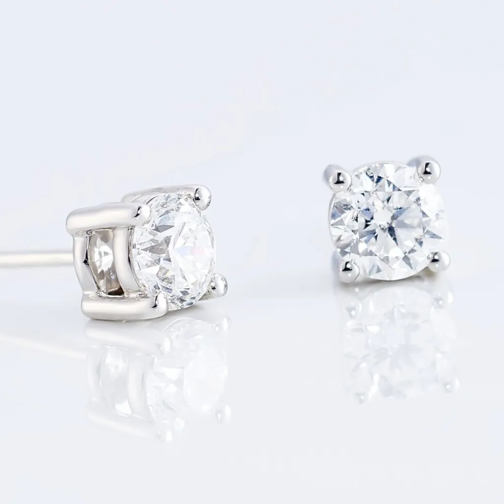 Boucles D’oreilles Puces Or Blanc 750/1000 Diamants Synthétiques 1.00ct Serti 4 Griffes Systèmes Alpas