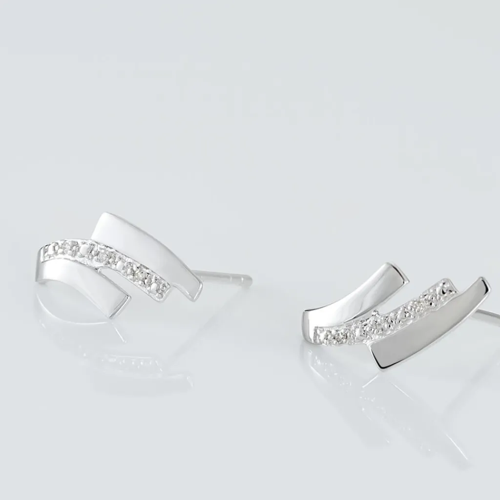 Boucles D’oreilles Or Blanc 375/1000 Formes Croisées Pavage Diamants
