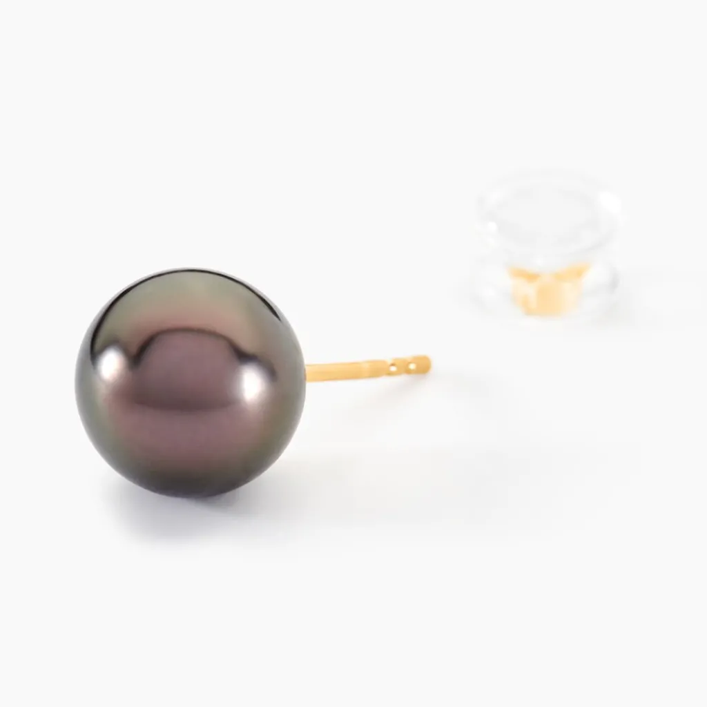 Boucles D’oreilles Or Jaune 375/1000 Perle De Culture Mers Du Sud Tahiti 8/9mm Semi-ronde