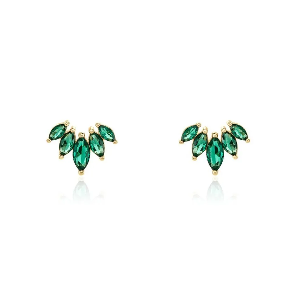 Boucles D’oreilles Puces Plaqué Or Jaune Oxydes De Zirconium Verts Forme Navette
